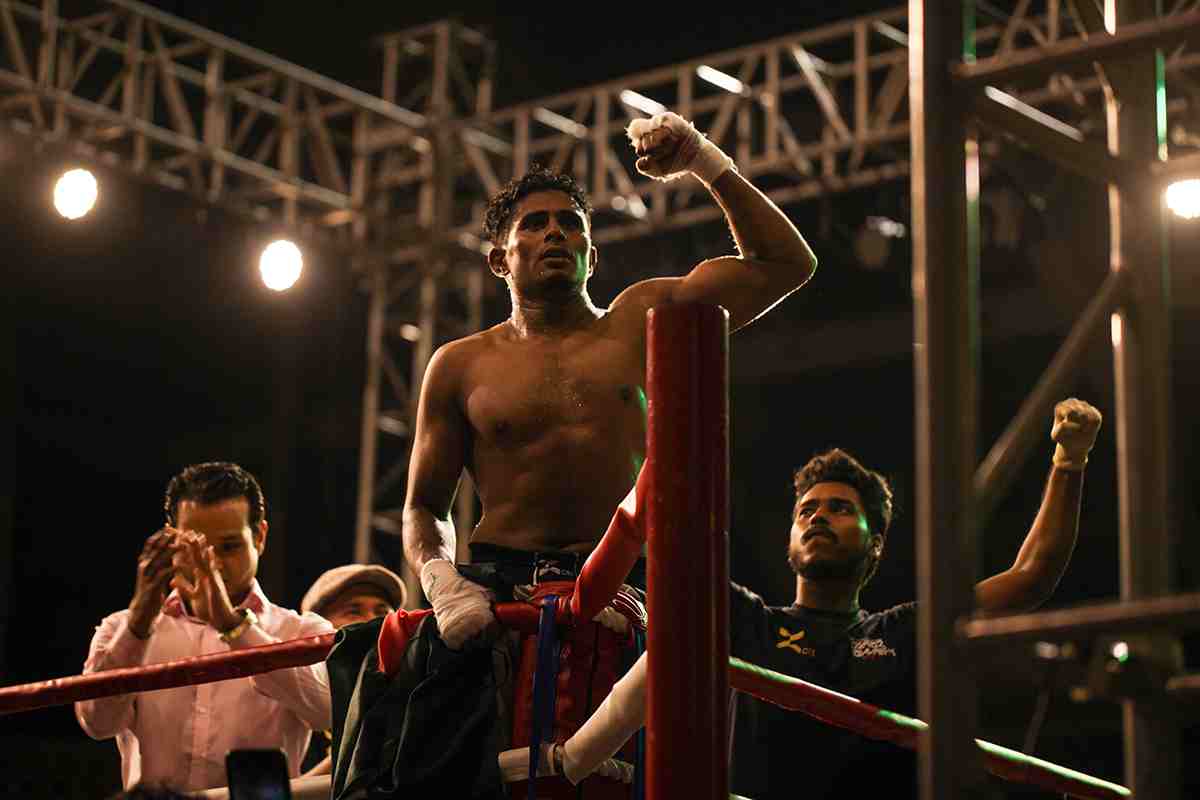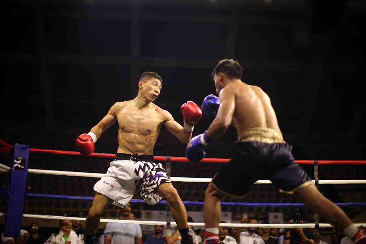 “South Asian Professional Boxing Fight Night-The Ultimate Glory” was held for the first time in the country at Shaheed Suhrawardi Indoor Stadium in Mirpur on Thursday. Bangladeshi boxer Al Amin has won against Nepalese boxer Bharat Chand in the welterweight category while Bangladeshi boxer Hira Mia has been defeated by Indian boxer Harsh Gill in the cruiserweight category in the knockout round. A total of 14 boxers from India and Nepal besides the host, have participated in the competition organised by Bangladesh Boxing Foundation. Photo: Abu Sufian Jewel/UNB.