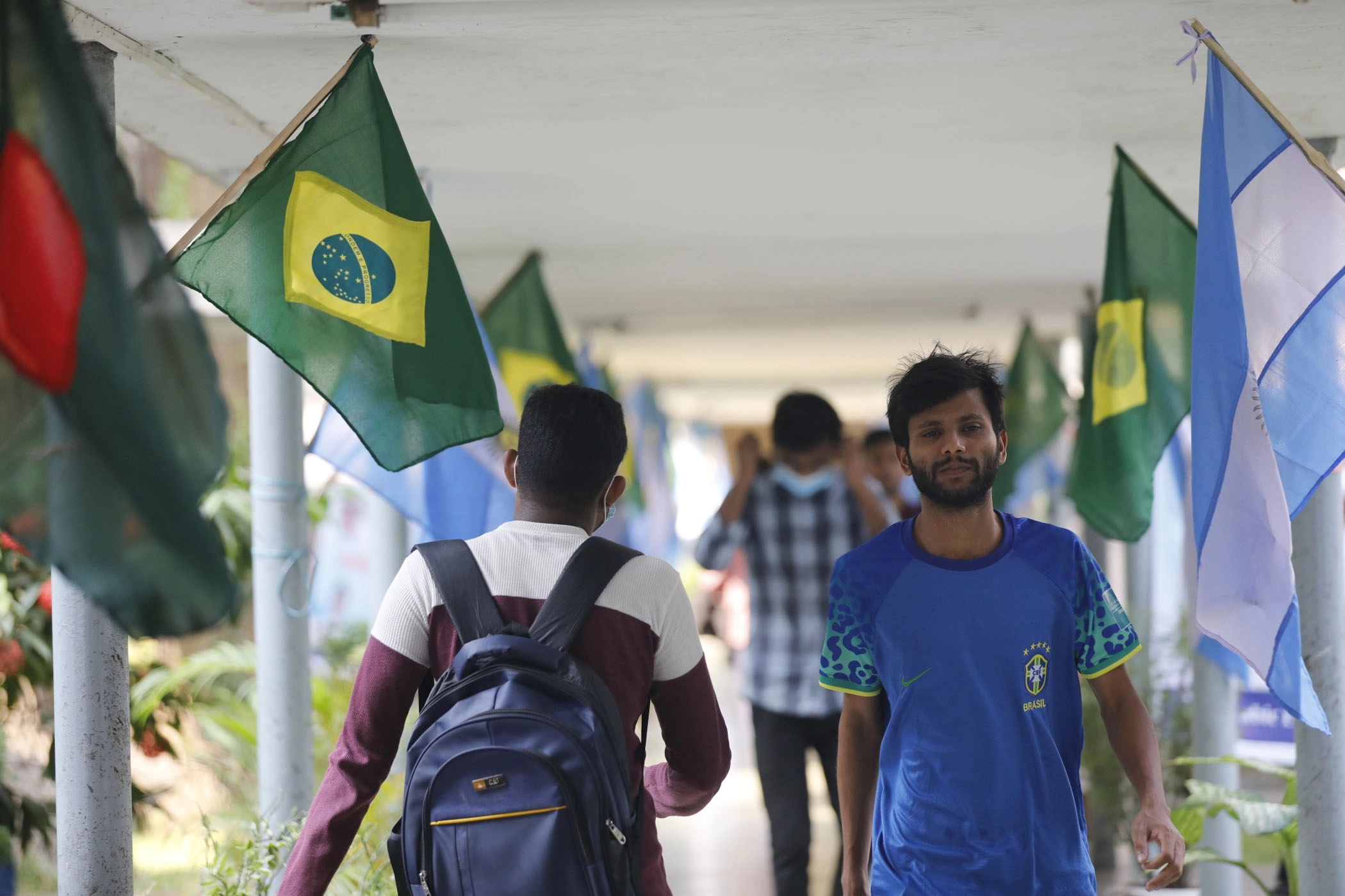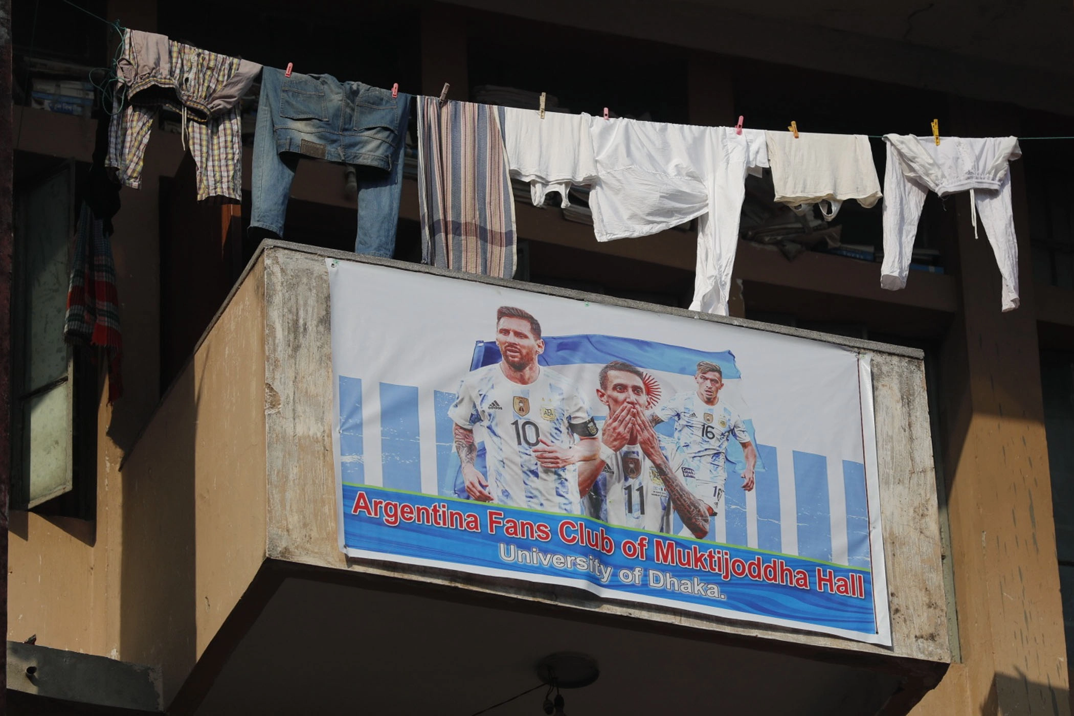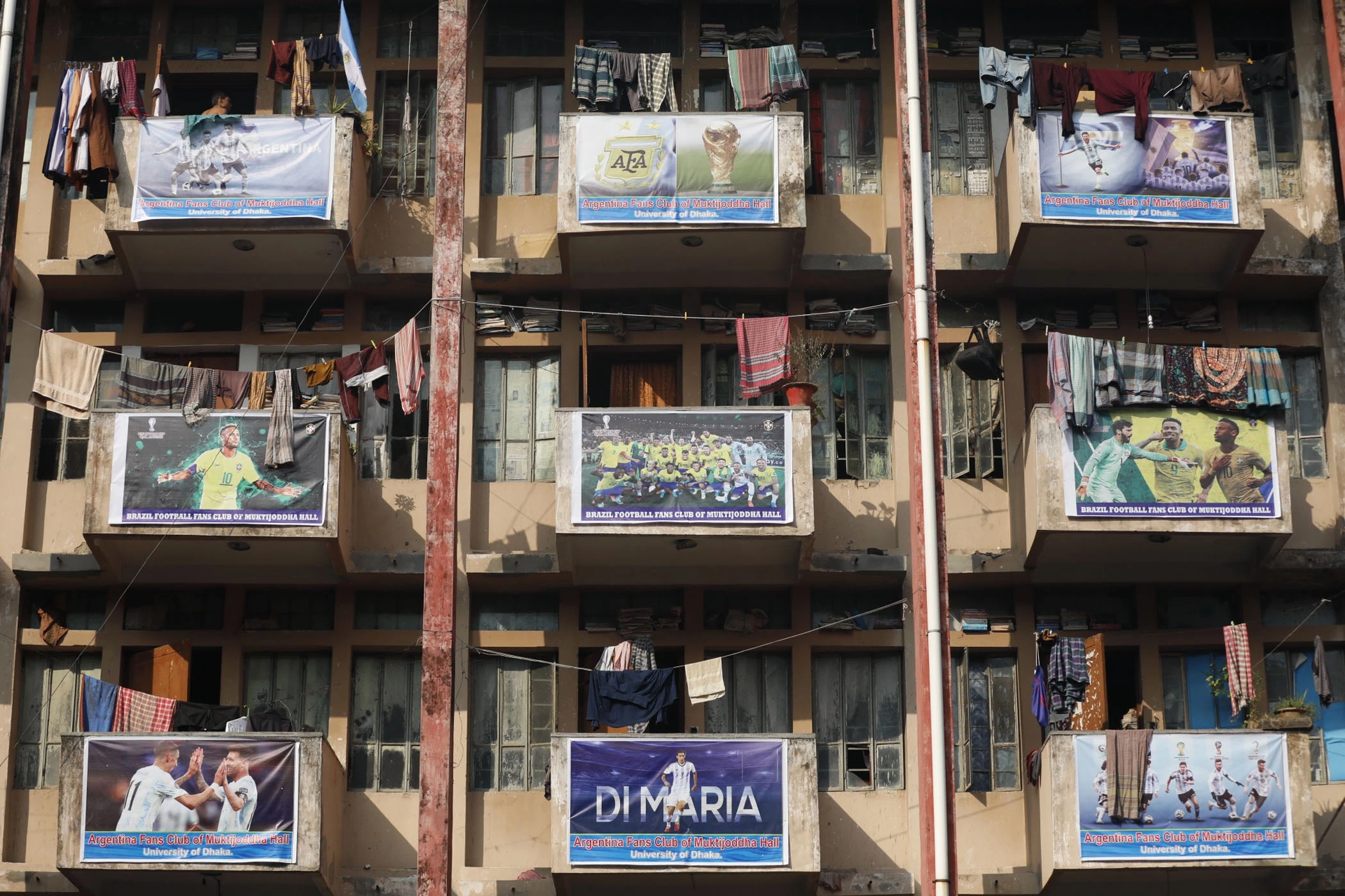 The FIFA World Cup Qatar 2022 opened Sunday as host nation Qatar faced Ecuador and every one in Bangladesh is already in a football frenzy. The university students, including those of Dhaka University (DU), have added the much-desired sound and colour in the buildup to "the greatest show on earth." Flags of different counties are visible in the dormitories, but the real battle is between the fans of South American arch-rivals Brazil and Argentina. The walls of DU dormitories are now all painted light blue and white or yellow. Posters and banners featuring Lionel Messi and Neymar engulf the campus.