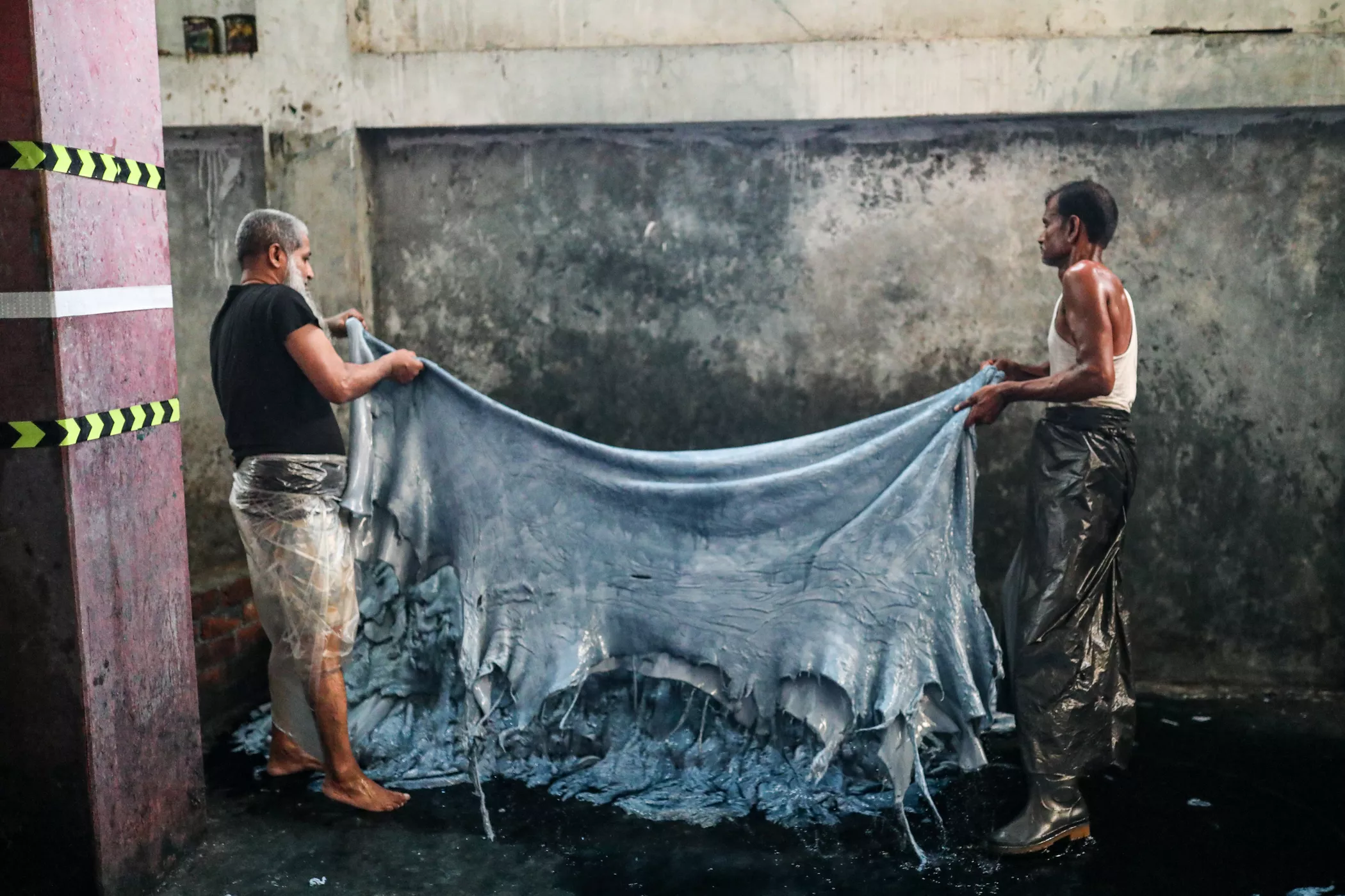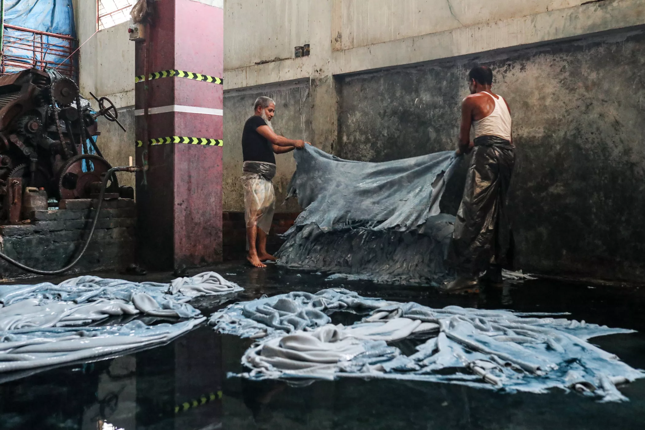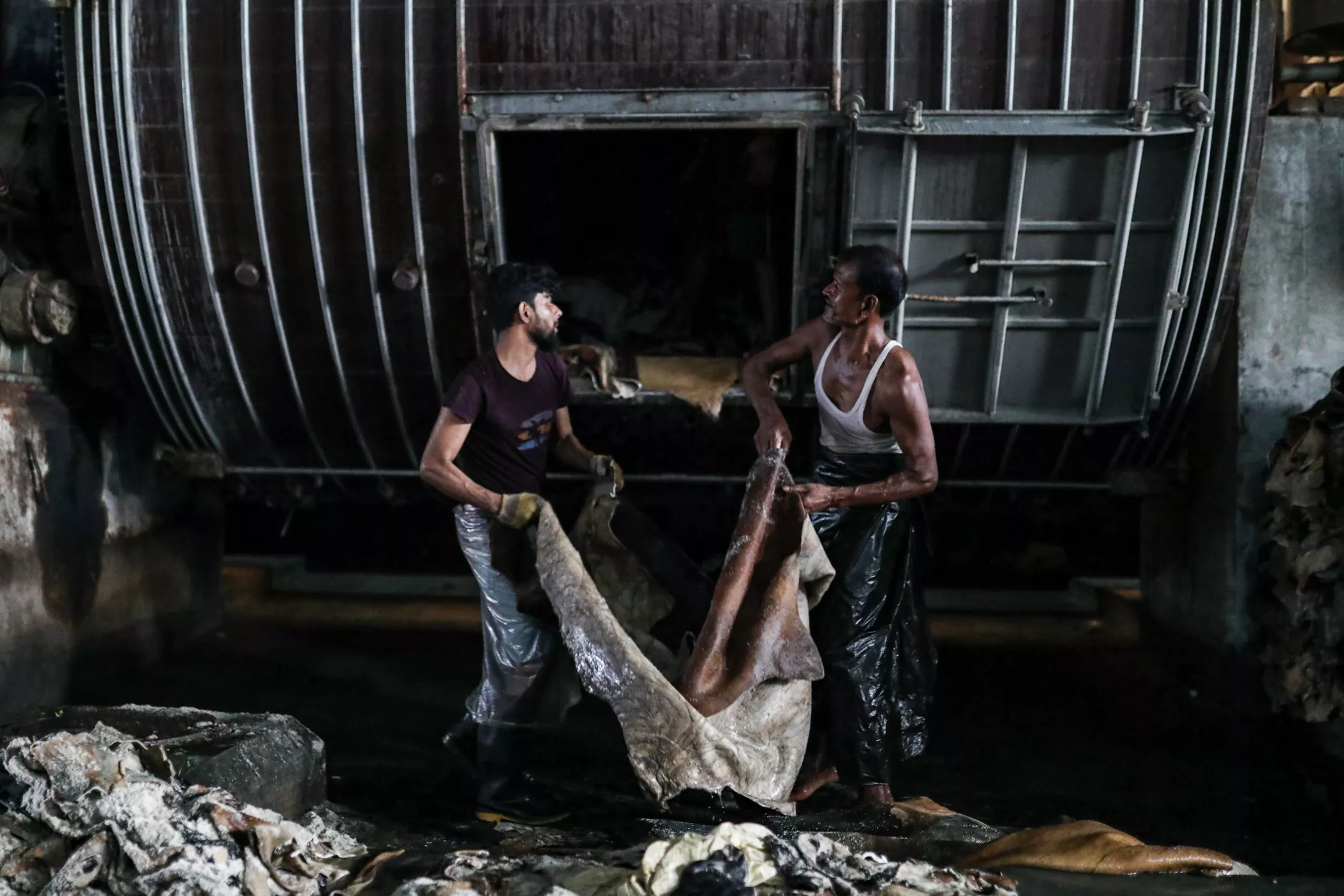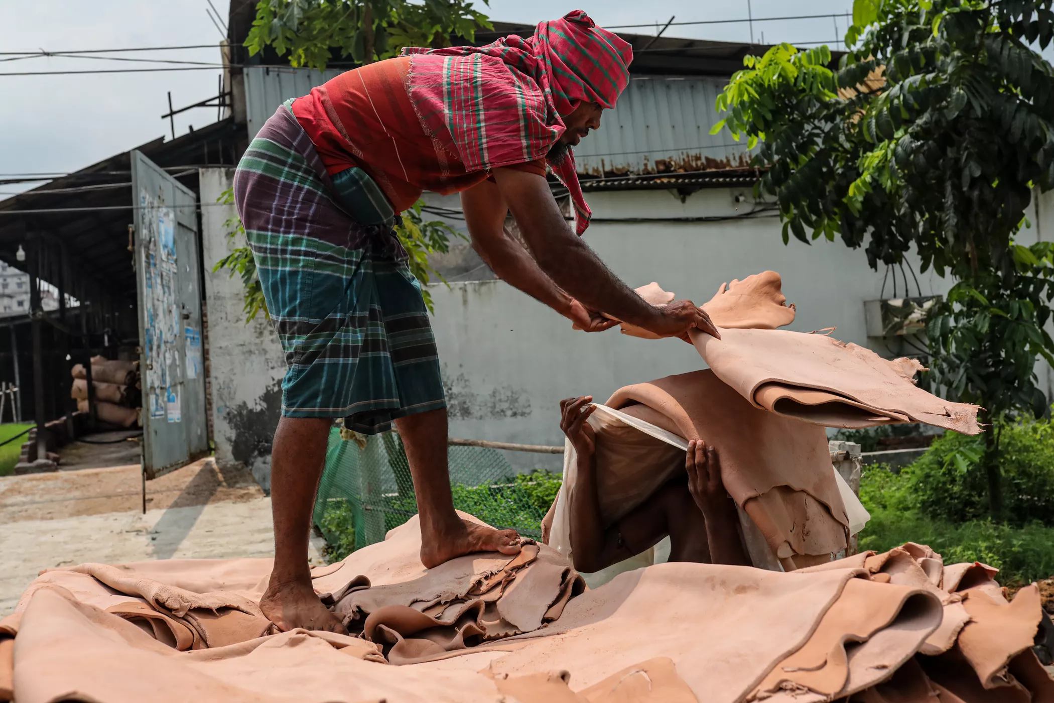 ঢাকার সাভারের হেমায়েতপুরের হরিণধরায় চামড়াশিল্প নগরের ট্যানারিগুলোতে চলছে চামড়া প্রক্রিয়াজাতকরণের কাজ৷ ঈদের দিন থেকেই চামড়াশিল্প নগরের বিভিন্ন ট্যানারিতে কোরবানির পশুর চামড়া সংগ্রহ এবং সংরক্ষণের কাজ চলছে৷ এখন ধীরেধীরে শুরু হয়েছে চামড়া প্রক্রিয়াজাতকরণের কাজ। তবে এখনো বন্ধ রয়েছে বেশকিছু কারখানা যেগুলোতে আগামী শুক্রবারের পর থেকে শুরু হবে বলে আশা করছেন চামড়া শিল্প নগরের কারখানা মালিক ও শ্রমিকেরা৷ ছবি আজ বুধবার (জুন ১১) তারিখে তোলা৷