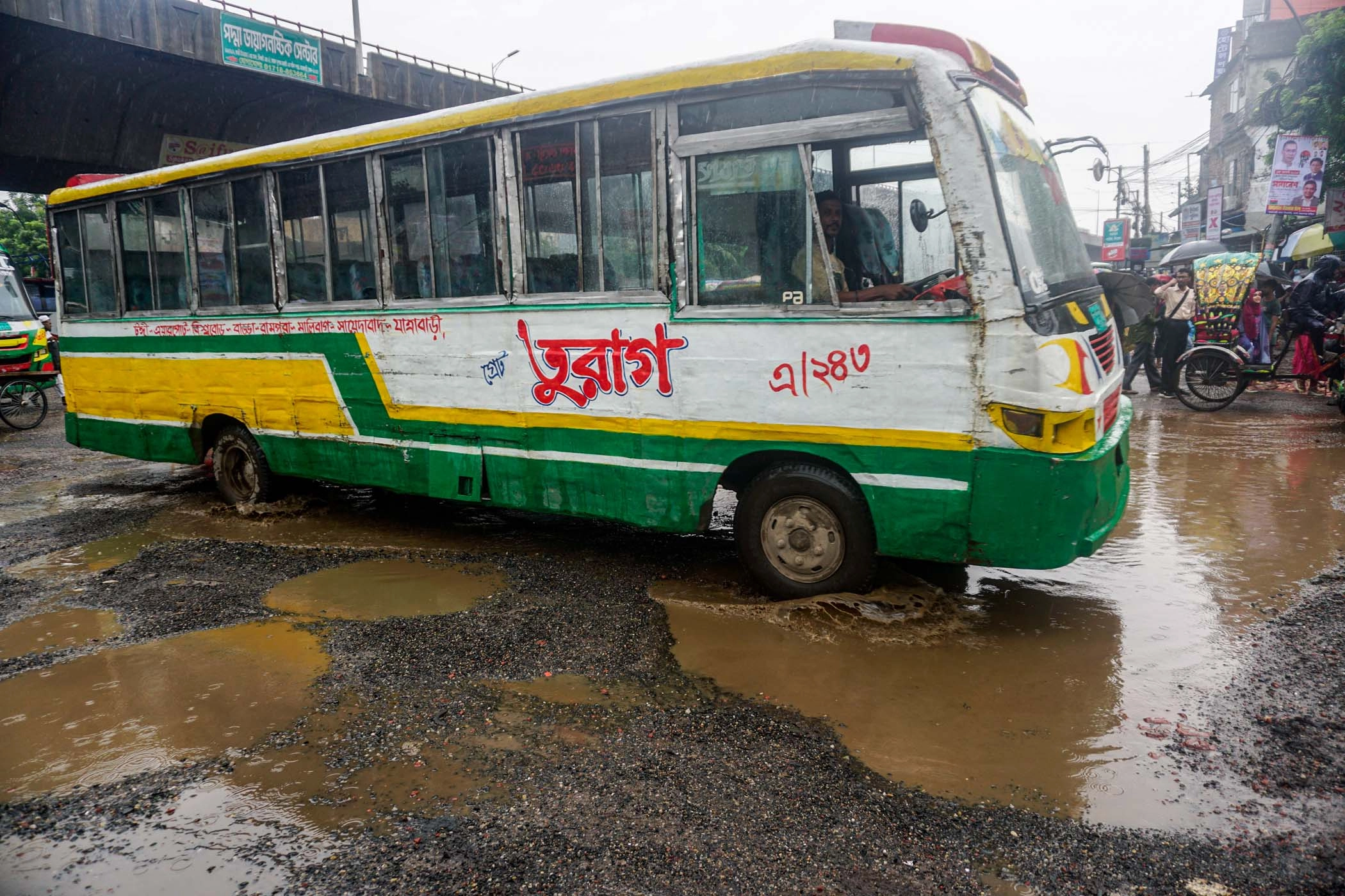 যাত্রাবাড়ী চৌরাস্তা ও আশেপাশের এলাকার মূল সড়কে খানাখন্দ ও গর্তের কারণে প্রতিনিয়ত যান চলাচলে সৃষ্টি হয় মারাত্মক ভোগান্তি। বৃষ্টির দিনে এসব গর্তে পানি জমে জনদুর্ভোগ আরও বেড়ে যায়। রাজধানীর অন্যতম ব্যস্ত এই এলাকায় আন্তনগর বাস, লোকাল বাস, প্রাইভেট কার, পণ্যবাহী যানবাহনসহ রিকশা ও সিএনজি চলাচল করে, যার ফলে সৃষ্টি হয় দীর্ঘ যানজট। এর পাশাপাশি, দোলাইরপার থেকে যাত্রাবাড়ী আসার এক পাশের রাস্তা কাটা ও ভাঙা অবস্থায় থাকায় গত সপ্তাহ থেকে তা বন্ধ রয়েছে, যা ভোগান্তি আরও বাড়িয়ে তুলেছে। ছবি আজ বৃহস্পতিবার (৩১ জুলাই) তোলা।