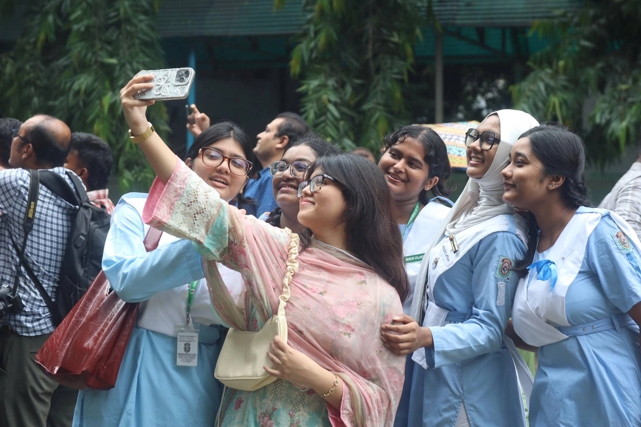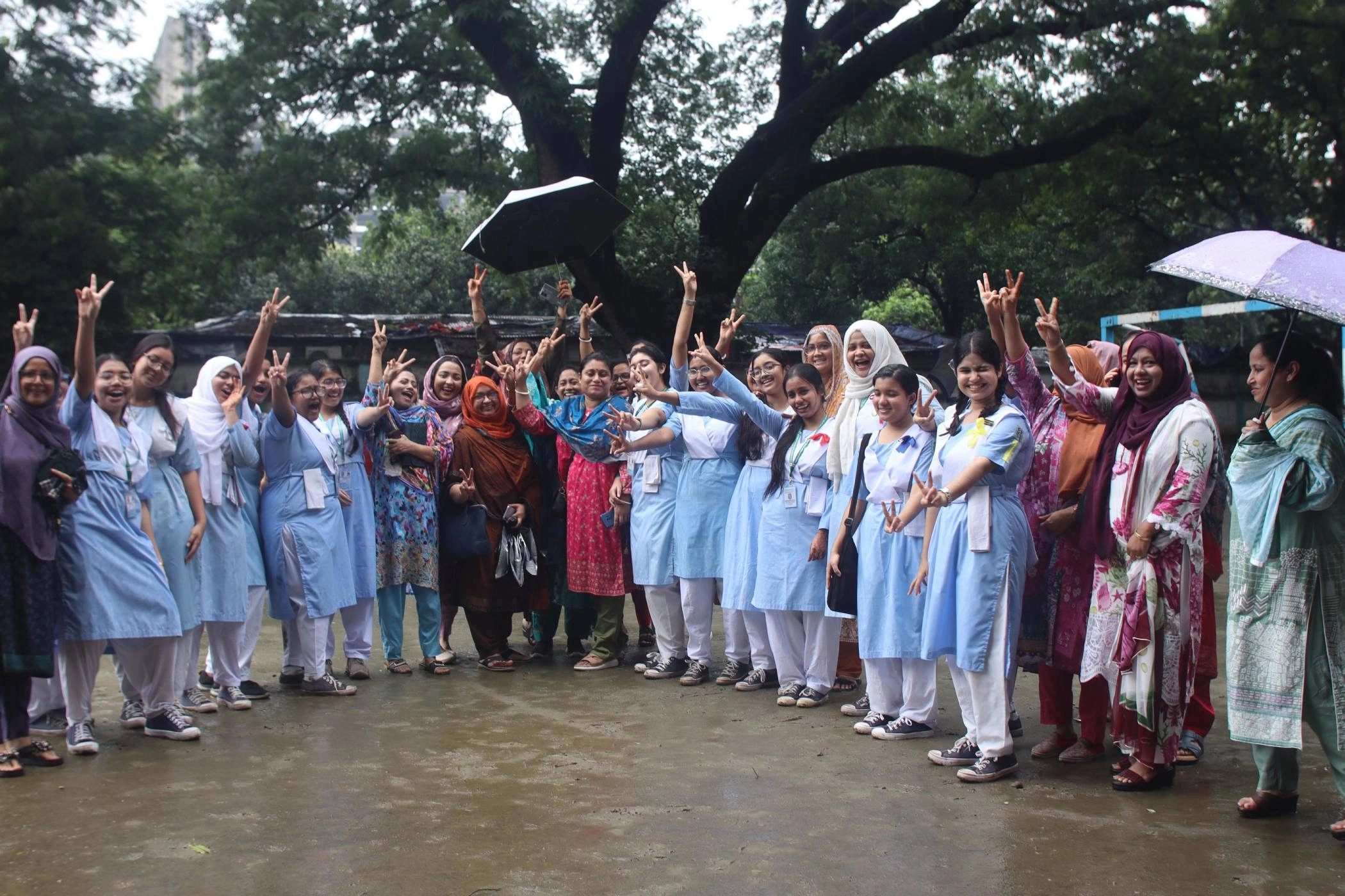 Students burst into celebration as SSC results are announced, embracing friends, snapping group selfies, and gathering at school premises despite the rain. Proud parents join in, sharing tears, smiles, and the overwhelming joy of success.