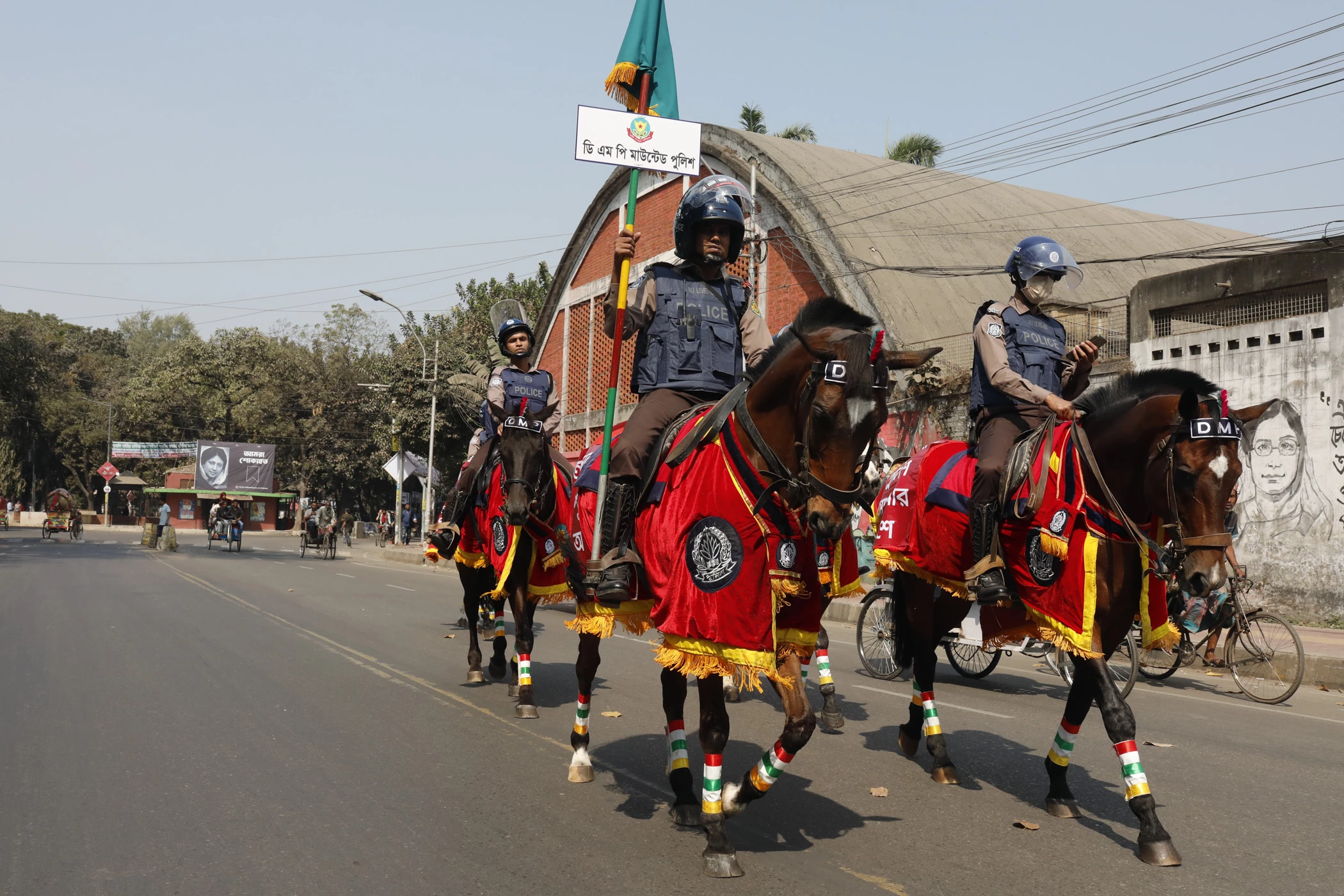Mounted Police Patrol Dhaka on the day of National Election